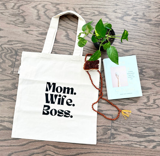 “Mom. Wife. Boss” Organic Tote (Tiger’s Eye Infused)