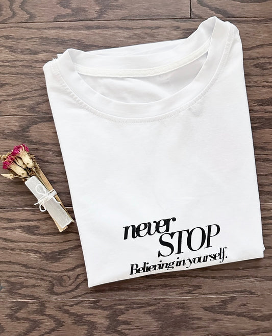 “Never Stop Believing in Yourself” Crystal-Infused Shirt